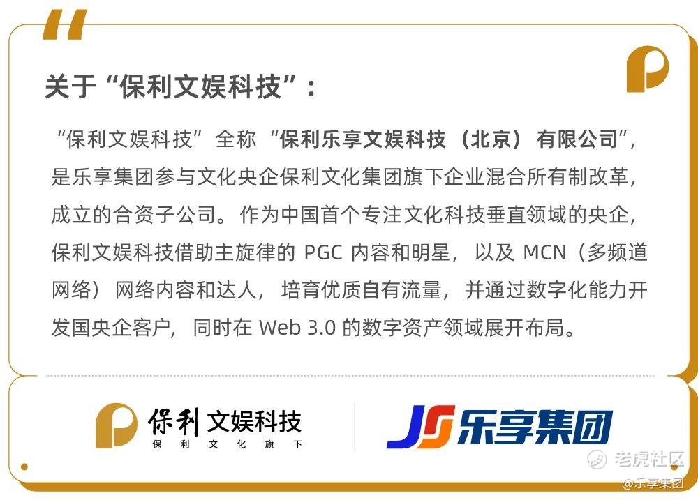 12月6日,保利乐享文娱科技(北京)有限公司(以下简称“保利文娱科技”)与京新基金举办战略签约仪式。乐享集团 $乐享集团(06988)$ 董事局主席、行政总裁,保利文娱科技副董事长朱子南;保利影业、保利文娱科技总经理李挺伟;京新基金执行董事、京合联盟秘书长孙祖兴出席签约仪式,并见证此次战略签约。