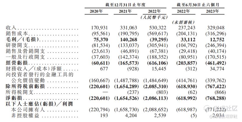 RoboSense的财务表现显示了其快速增长的趋势。在过去的2020年、2021年和2022年,其收入分别为1.71亿、3.31亿和5.30亿元人民币,年复合增长率达到了77.9%。