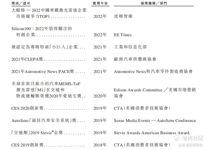 此外,RoboSense在激光雷达领域的创新和领先地位已经得到了多个权威机构和媒体的认可和奖励。例如,公司获得了2019、2020CES创新奖,被工业和信息化部认定为专精特新“小巨人”企业,是Silicon100 2022年值得关注的初创企业。公司全球首款且最小的汽车MEMS-ToF激光雷达「M1」在交通和物流运输类荣获2020年爱迪生奖。