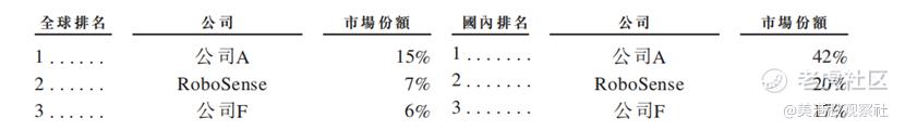 根据招股书,按2022年的销售收入计,RoboSense在全球及中国激光雷达解决方案市场(不包括少于16线的低端激光雷达)排名第二,市场份额分别约为7%及20%。按2022年的销量计,RoboSense在全球及中国激光雷达解决方案市场(不包括少于16线的低端激光雷达)排名第三,市场份额分别约为12%及21%。而截至2023年3月31日,RoboSense就52款车型取得21家汽车整车厂及一级供应商的定点订单,两方面都在全球激光雷达供应商里排名第一。