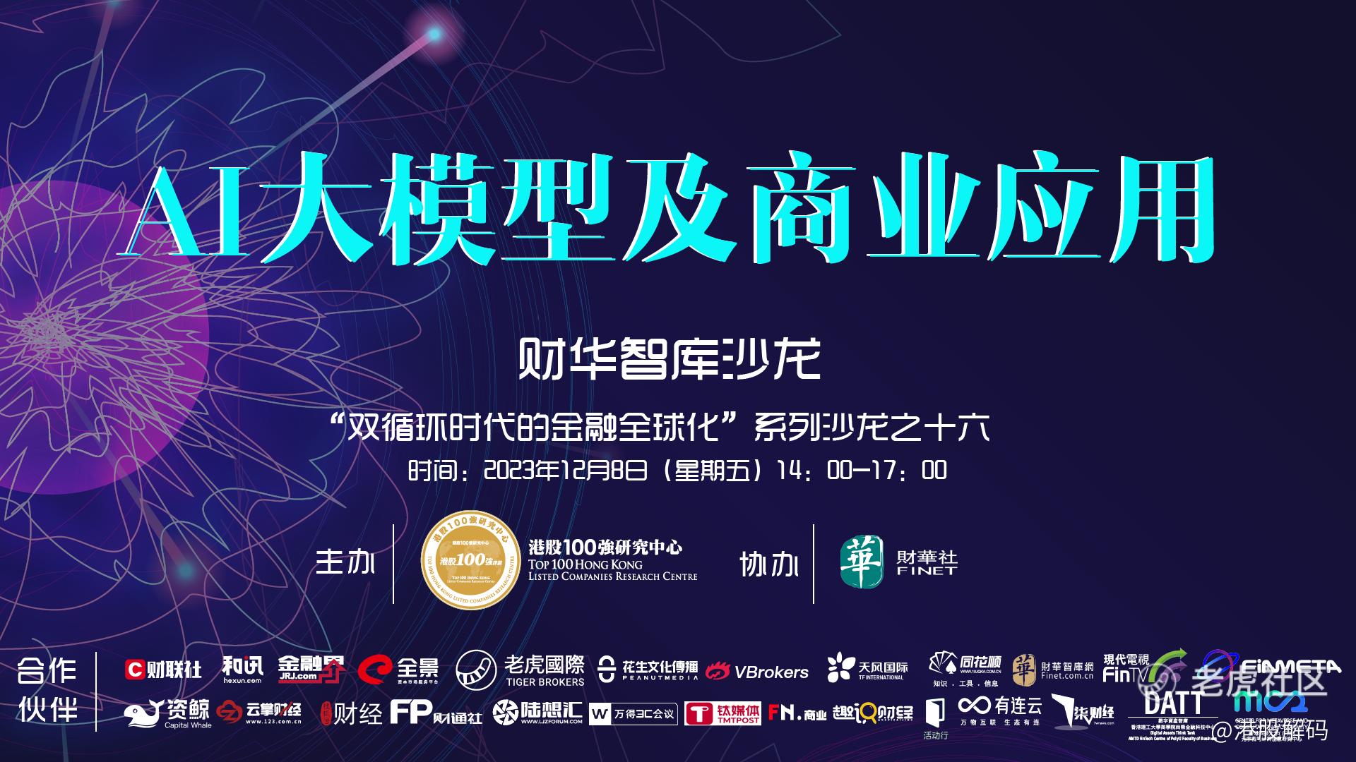 2023年12月8日(周五)14:00-17:00,由港股100强研究中心主办、香港财华社协办的财华智库“双循环时代的金融全球化”系列沙龙第十六期《财华智库沙龙:AI大模型及商业应用》将于线上举办,邀请相关领域权威专家以及业界专业人士,共同探讨大模型、AI及商业应用中的广阔前景和挑战。