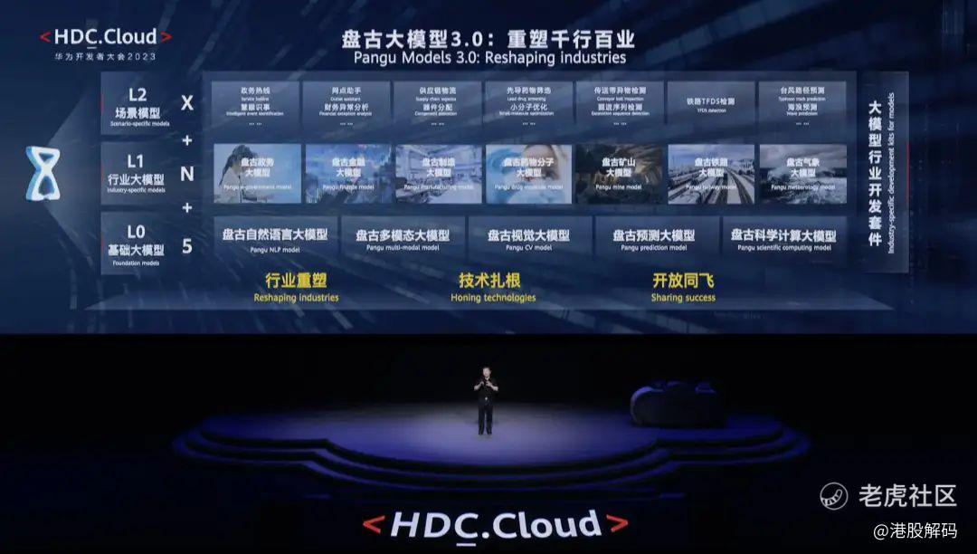 华为云盘古大模型3.0作为面向行业的大模型,包含L0中5类基础大模型、L1行业大模型及L2场景模型三层架构。2023年7月7日,面向行业的盘古大模型3.0发布,包含L0层基础大模型、L1层行业大模型、L2层场景大模型三个层次。其中,基础大模型包括盘古NLP大模型、盘古CV大模型、盘古多模态大模型、盘古预测大模型、盘古科学计算大模型等,提供满足行业场景需要的上百种能力;行业大模型包括政务、金融、制造、药物分子、矿山、铁路、气象等大模型;场景大模型为客户提供的更多细化场景的场景大模型,如政务热线、网点助手、供应链物流、先导药物筛选、台风路径预测等。盘古大模型采用完全的分层解耦设计,可以快速适配、快速满足行业的多变需求。
