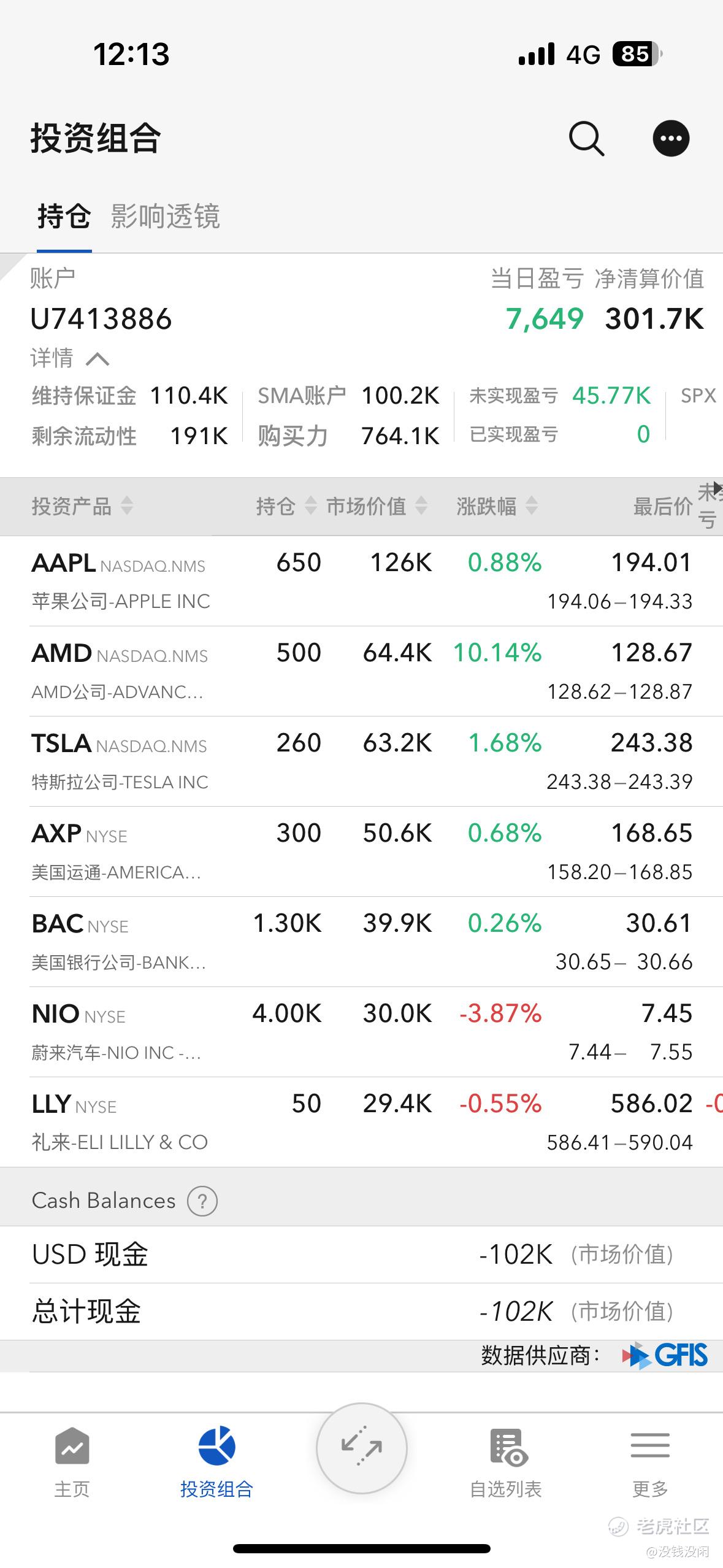 $苹果(AAPL)$ $特斯拉(TSLA)$ $美国运通(AXP)$ $美国银行(BAC)$ 借着AMD旗舰ai芯片发布,账户收益今年破百了,感恩的心。