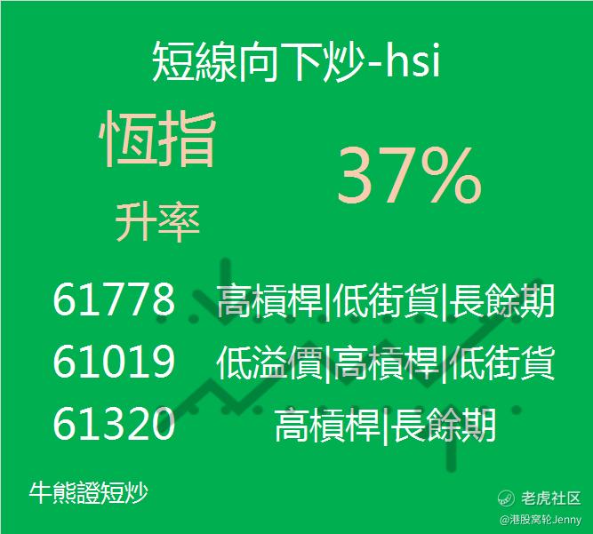 恒指即市阻力位16939。考虑在阻力位附近看淡,行使价16800,2024年4月到期的认沽证产品,可以考虑20446,引伸波幅最低,实际杠杆7.2倍。其次可以考虑20642,引伸波幅25.5%,实际杠杆7.3倍。