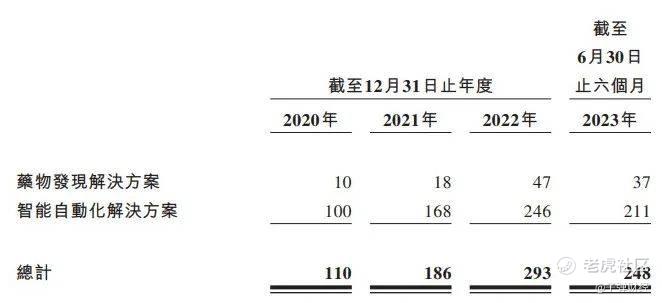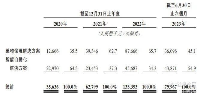 从收入来看,晶泰科技业务主要分为药物发现解决方案和智能自动化解决方案两部分。