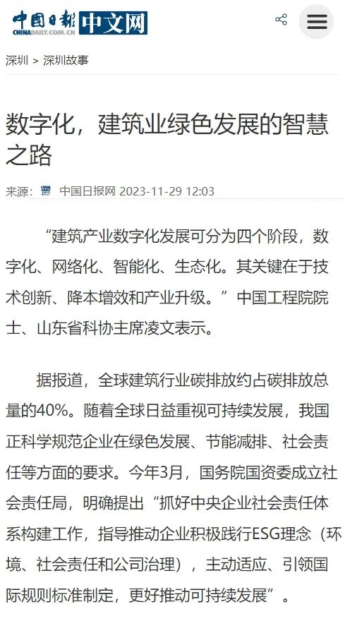 主流媒体聚焦|加快数字化转型,多位院士助力建筑业绿色发展