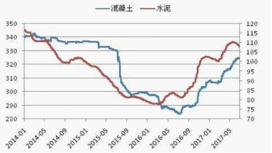 投资周期性或困境反转型企业的难点在于把握买入时机,以典型的周期行业水泥行业为例,下图是国内水泥与混凝土近几年的价格走势图。