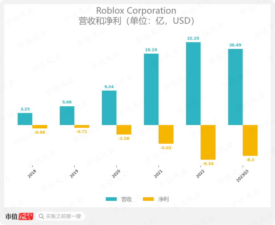 不过,Roblox的财务报表讲述的故事就没有这么有趣。尽管Roblox的收入在过去几年飙升,但公司至今仍未实现盈利。