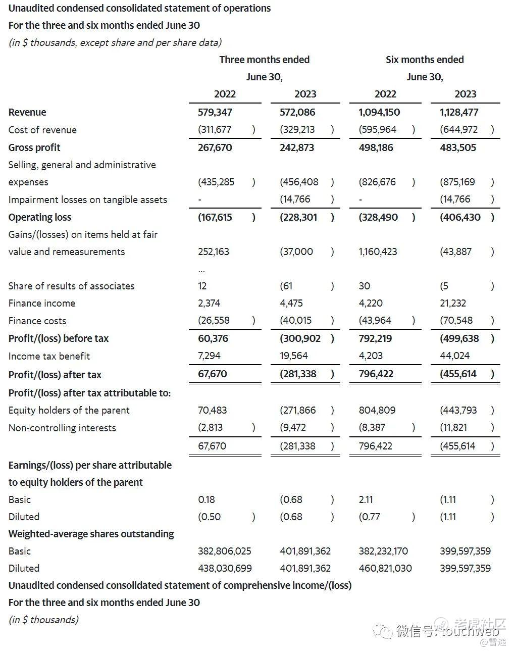 Farfetch在2023年上半年营收为11.28亿美元,运营亏损为4.06亿美元,上年同期运营亏损为3.3亿美元。