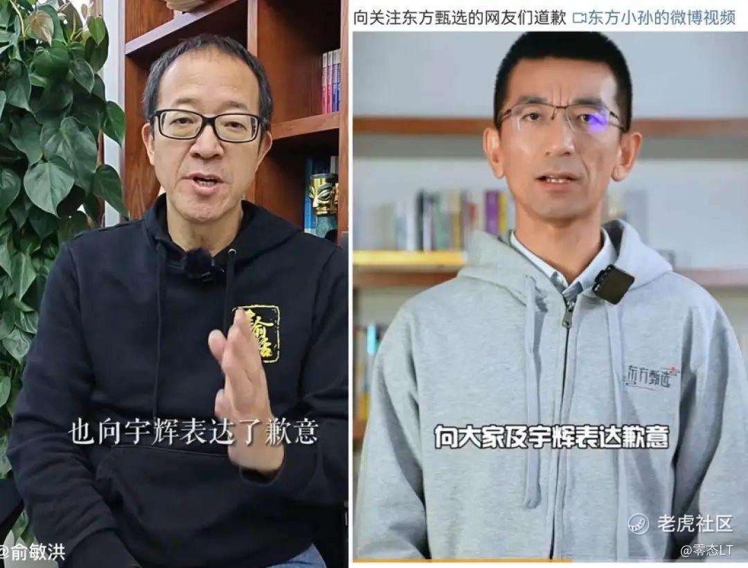 ▲图:东方甄选创始人俞敏洪、东方甄选CEO孙东旭向董宇辉致歉