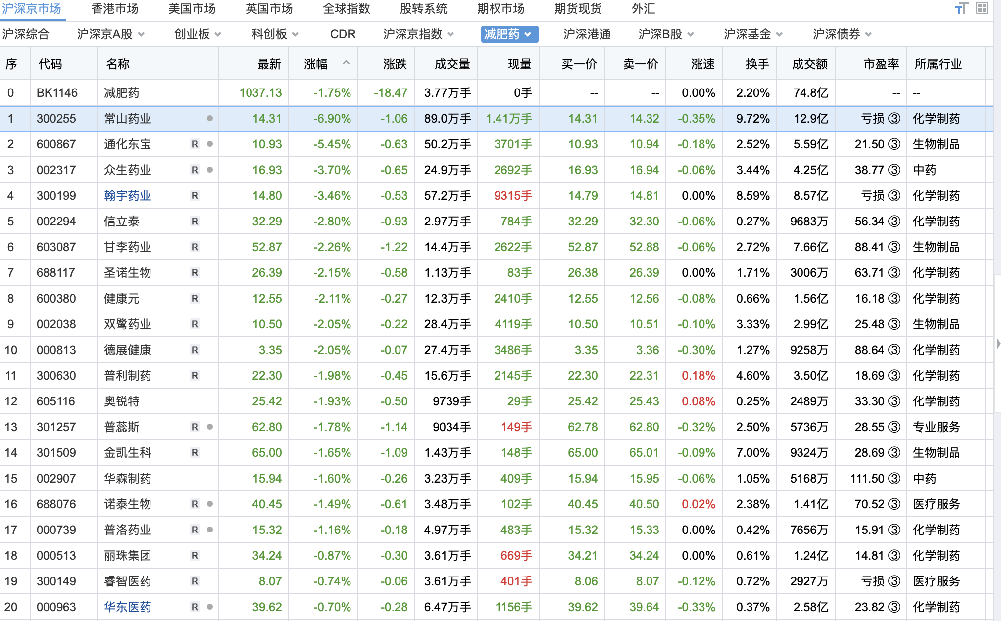 受上述消息刺激,礼来股价下挫,截至当地时间12月15日收盘,礼来股价报收573.67元/股,跌幅3.99%。国内减肥药板块也受到牵连,截至15日收盘,减肥药(BK1146)跌1.75%,其中靠着减肥药概念一路冲高的常山药业(300255.SZ)当日跌幅高达6.9%。