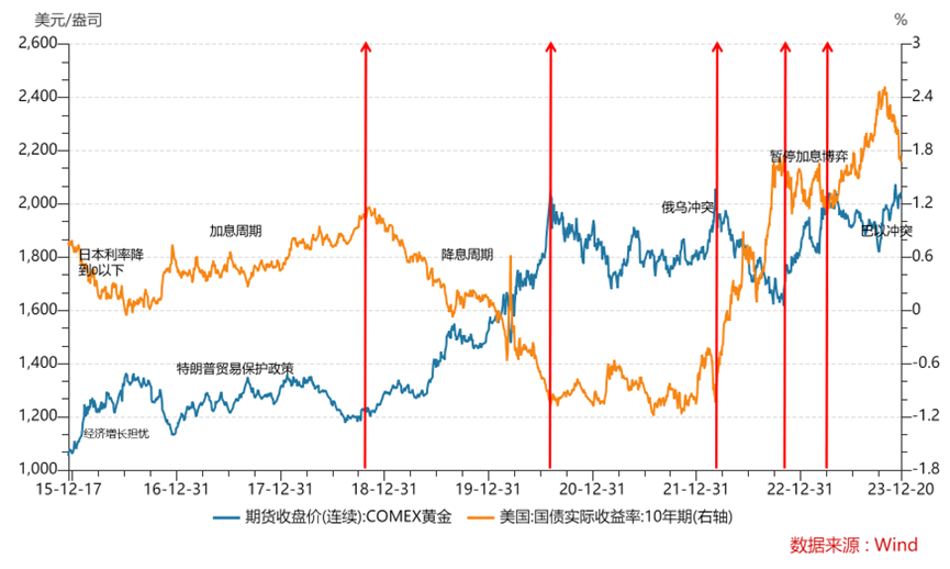 美债长期实际利率为锚,盘点黄金价格波动历史