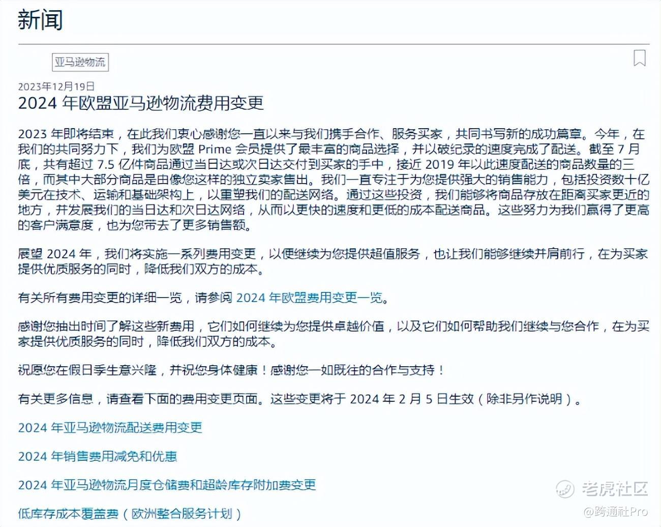 亚马逊欧洲站多项费用变更 图源:亚马逊