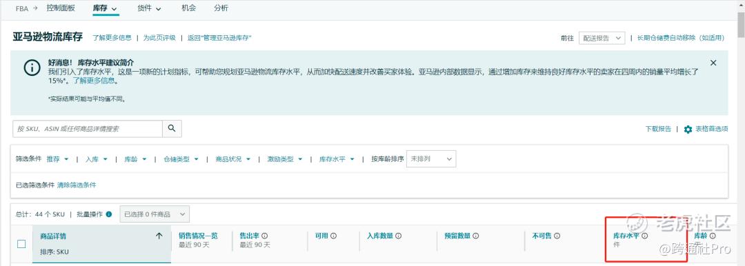 卖家可查看库存水平 图源:亚马逊后台