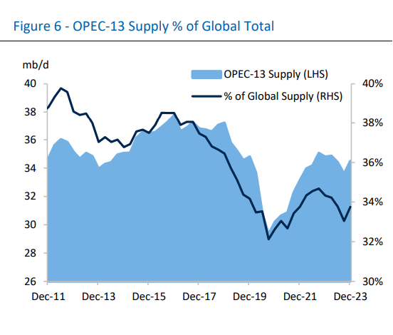 2023年油价的故事是:OPEC减产挺价,非OPEC国家疯狂增产,尤其是美国