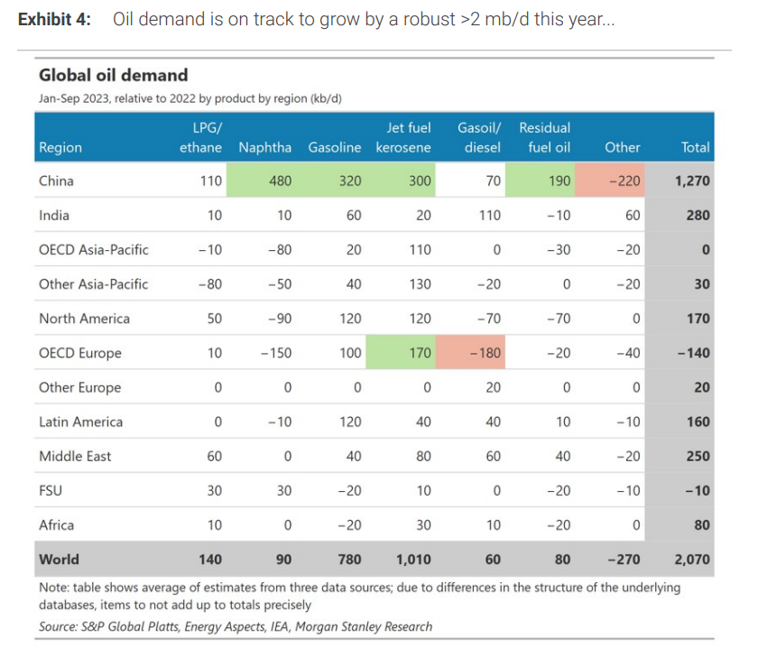 - 2023年的需求增长很多来自中国的开放,这部分增量在2024年预计不会有,但中国的需求明年可能依然是正数增长