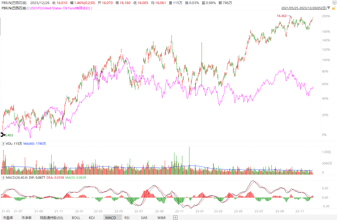 所以为什么我喜欢中小型铜矿公司呢,这就像下面这个对比,PBR巴西石油和USO