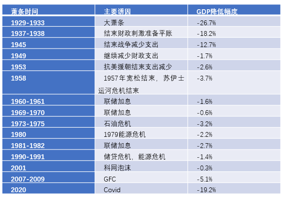 从大萧条开始到现在,美国经历过很多次萧条,但除了2020年这一次之外,大部分萧条的诱因是下面三个