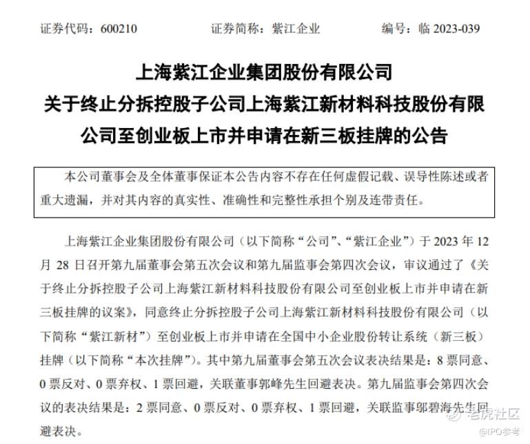 $紫江企业(600210)$ 【紫江企业:拟终止分拆紫江新材至创业板上市 并申请在新三板挂牌】紫江企业公告,拟终止分拆控股子公司紫江新材至创业板上市,并申请在全国中小企业股份转让系统(新三板)挂牌。紫江新材为紫江企业专注于软包锂电池用铝塑复合膜的研发、生产及销售的独立业务运营平台。(公司公告)
