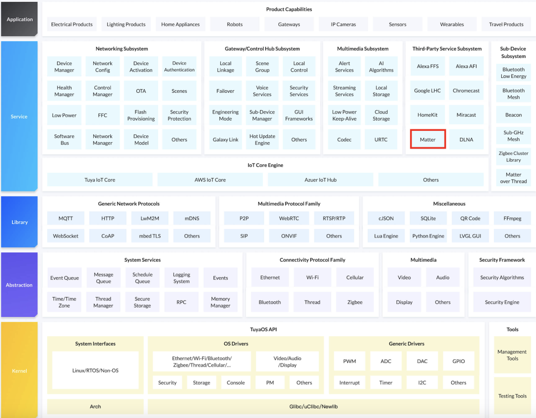 Matter 在 TuyaOS 里的架构图如下: