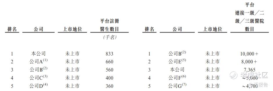 中国数字健康医疗服务市场竞争激烈,截至2022年12月31日,根据平台注册医生数目统计,公司排名第一;根据平台连接一级/二级/三级医院数目来衡量,公司排名第三。