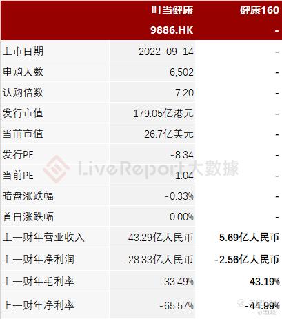 本次选取的同行业对比公司为:叮当健康(9886.HK)