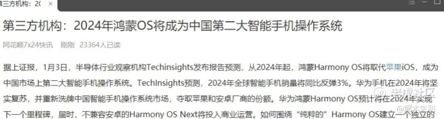 1月1日,开源鸿蒙 OpenHarmony 4.1 Beta1 发布,开始提供首批API 11接口,华为终端BG、首席运营官何刚1日表示,2023年是鸿蒙原生应用的开局之年,2024年将是鸿蒙生态全面进化的关键一年;