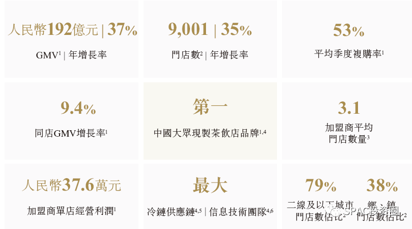 根据灼识咨询报告,按2023年的商品销售额(GMV)及截至2023年12月31日的门店数量计,“古茗”均是中国最大的大众现制茶饮店品牌,亦是全价格带下中国第二大现制茶饮店品牌。截至2023年12月31日,古茗的门店网络共有9,001家门店(8995家加盟店、直接管理6家门店),按门店数量计,是全球前五大现制饮品品牌。