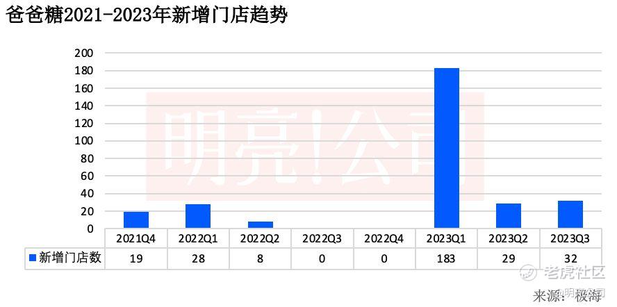 在新增门店上,爸爸糖在2021年左右季度新增门店约为20家上下,2021年四季度新增19家门店,2022年一季度新增28家门店,到二季度只有8家门店了,三季度和四季度多没有新增门店。到2023年一季度,新增门店一下增加到183家,把之前未开的门店都集中到该季度开店了,二季度和三季度保持了正常开店品类,分别开出了29家和32家门店。