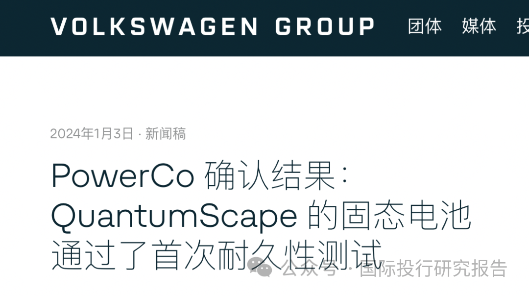 PowerCo 首席执行官弗兰克·布洛姆 (Frank Blome) 表示:“这些测试结果非常令人鼓舞,也是固态电池批量生产之路上的一个里程碑。”