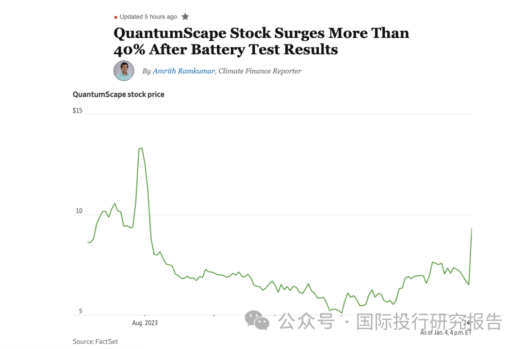 狼来了!宁德时代比亚迪的敌人固态电池新突破:QuantumScape暴涨40%