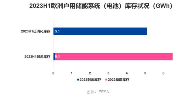 根据国内产业机构EESA统计,2022年全球户用储能系统(电池)出货量约为24.4GWh,其中对欧洲户用储能市场出货量达到约9.8GWh;然而,2022年欧洲户用储能实际装机4.6GWh,仅2022年底欧洲户用储能系统(电池)库存约为5.2GWh。
