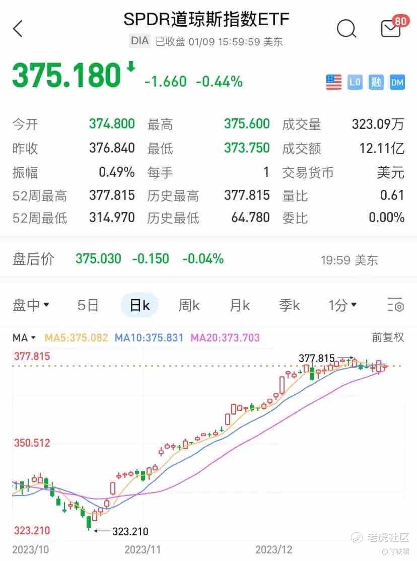 综合以上分析,针对SPDR道琼工业平均指数ETF(DIA),建议在市场没有明确继续上涨信号之前采取观望态度。投资者应密切关注宏观经济数据、政策变化和公司业绩等因素,并根据个人投资目标和风险承受能力做出相应决策。投资有风险,投资者应谨慎对待,并在投资前进行充分的研究和风险评估。$道琼斯ETF(DIA)$