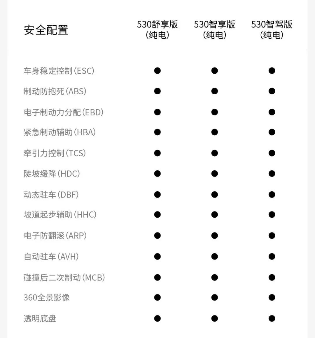 三个版本的主动安全配置也全系满配