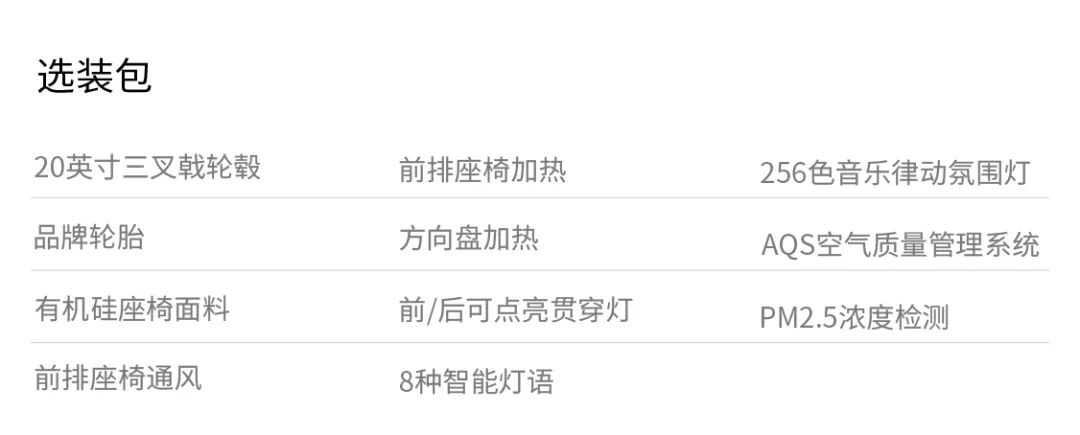 全系座椅可通过“全配套装”选装包