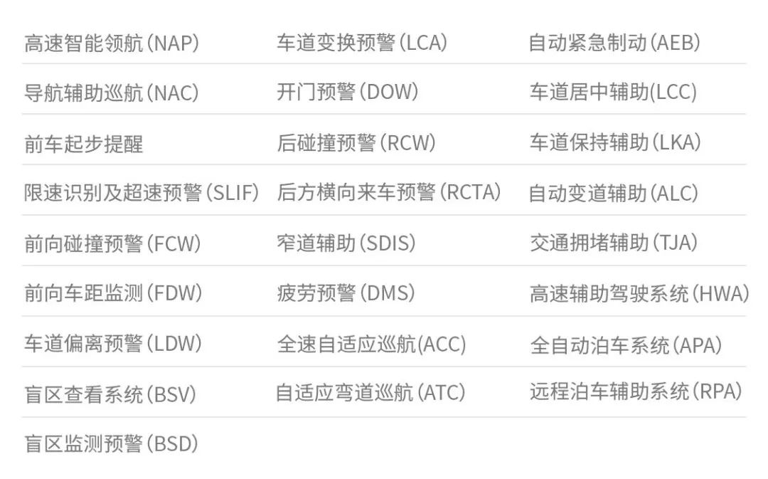 25项智能辅助驾驶功能
