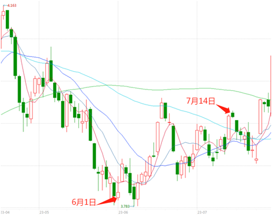 至7月14日,沪深300ETF现货由3.810元微涨至3.952元。同期,投资者老张买入的“300ETF购7月3800”价格涨至0.1590元,卖出的“300ETF购7月4000”由于时间价值的损耗,价格跌至0.0189元,老张获利平仓,通过比率价差策略共获利7350元。