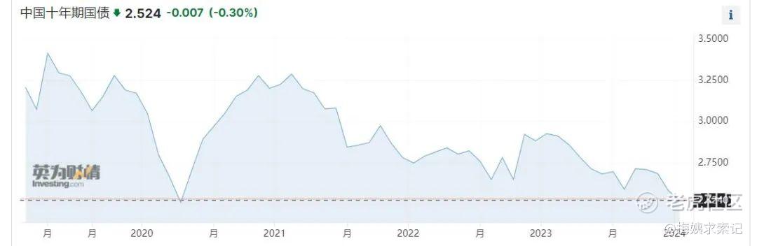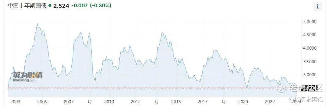 再给大家看张图,这是近20年十年期国债收益率的走势。可以说,目前2.524%的收益率也几乎是近20年以来的历史底部了。