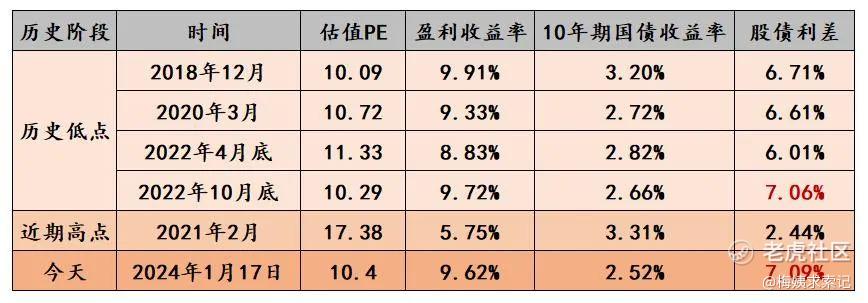 梅姨又统计了下目前沪深300的股债利差,已经超过了18年底、20年3月、22年4月、22年10月几个公认的股市低估时刻的股债利差了!