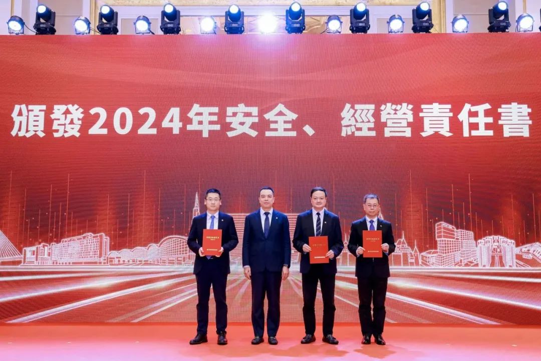 会上播放了2023年总结视频,颁发6类集体奖项和8类个人奖项,表彰2023年度做出突出贡献的集体和个人,并颁发2024年安全、经营责任书。