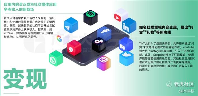 此外,社交平台通常依赖广告收入来盈利,活跃用户和使用时间是衡量广告效果的关键因素。然而,越来越多的社交平台开始尝试直接从用户身上获取收入。据预测,到2024年,媒体共享网络的用户支出将增长152%,达到近13亿美元。
