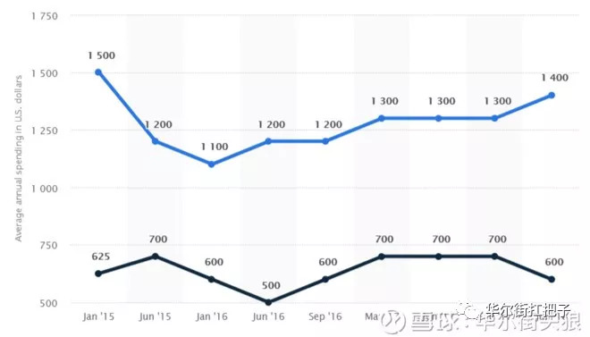 上图展示的就是亚马逊会员与非会员每年在亚马逊上的花费 。 会员对亚马逊的贡献是相当大的 。 这也是为什么亚马逊不断的给会员推出优惠与新的产品 。