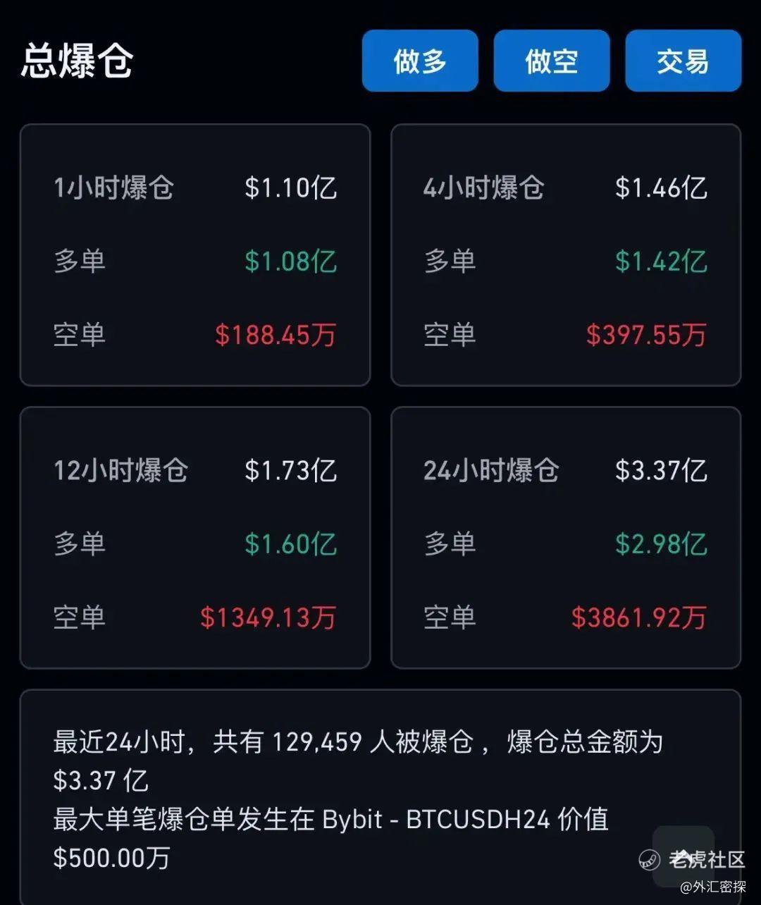 24小时虚拟货币全网爆仓人数近13万,爆仓总金额高达3.37亿美元(约合人民币24.2亿元)。其中多单爆仓2.98亿美元,空单爆仓超3860万美元。