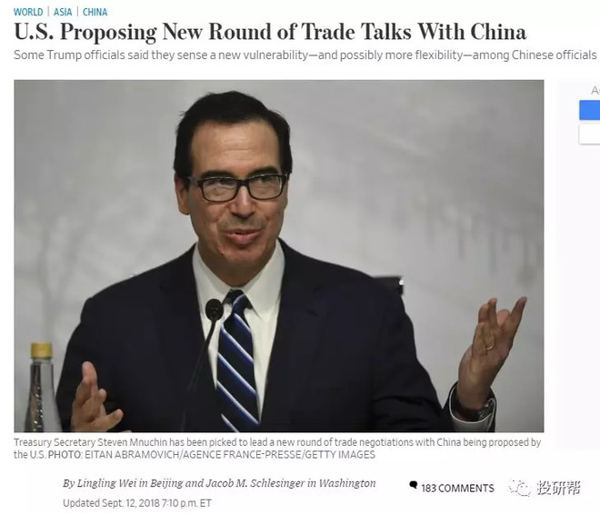 昨天结尾我说美国向我们递出橄榄枝了,想要坐下来谈,是因为看到一篇华尔街日报的文章:
