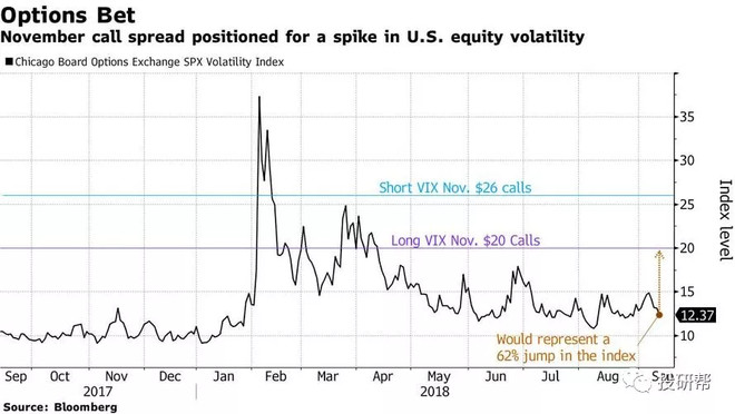 有个神秘的期权交易者,斥巨资做了几笔今年10到11月的VIX期权: