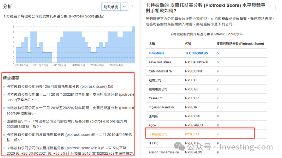 卡特彼勒Piotroski评分,来源:InvestingPro