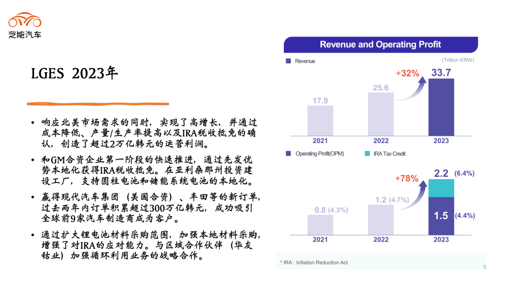 从整体的收入来看,LGES在全球还是受益于美国市场的需求提升,利润层面IRA给了很多的增长(7000亿韩元),从24年的展望来看,会是全球市场减缓的一年。