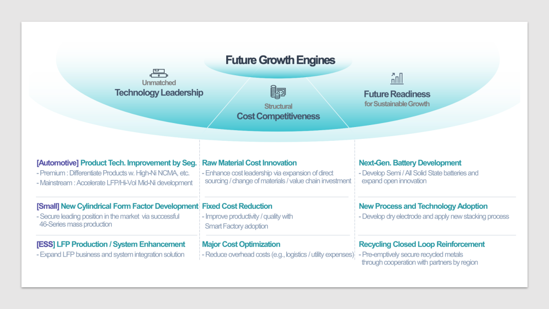 LGES接下来很关键,强化其技术领先地位、提升成本竞争力,并为未来做好准备。在以下几个方面展开了战略行动: