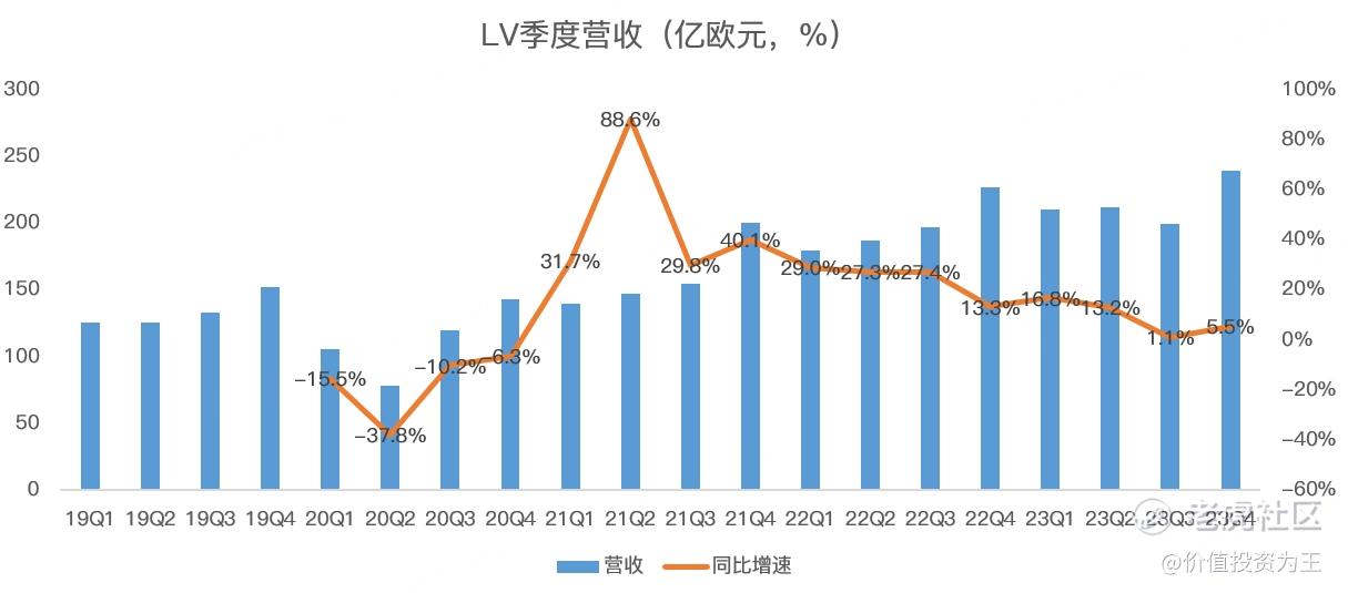 具体来看,LV四季度营收239.48亿欧元,同比增长5.5%: