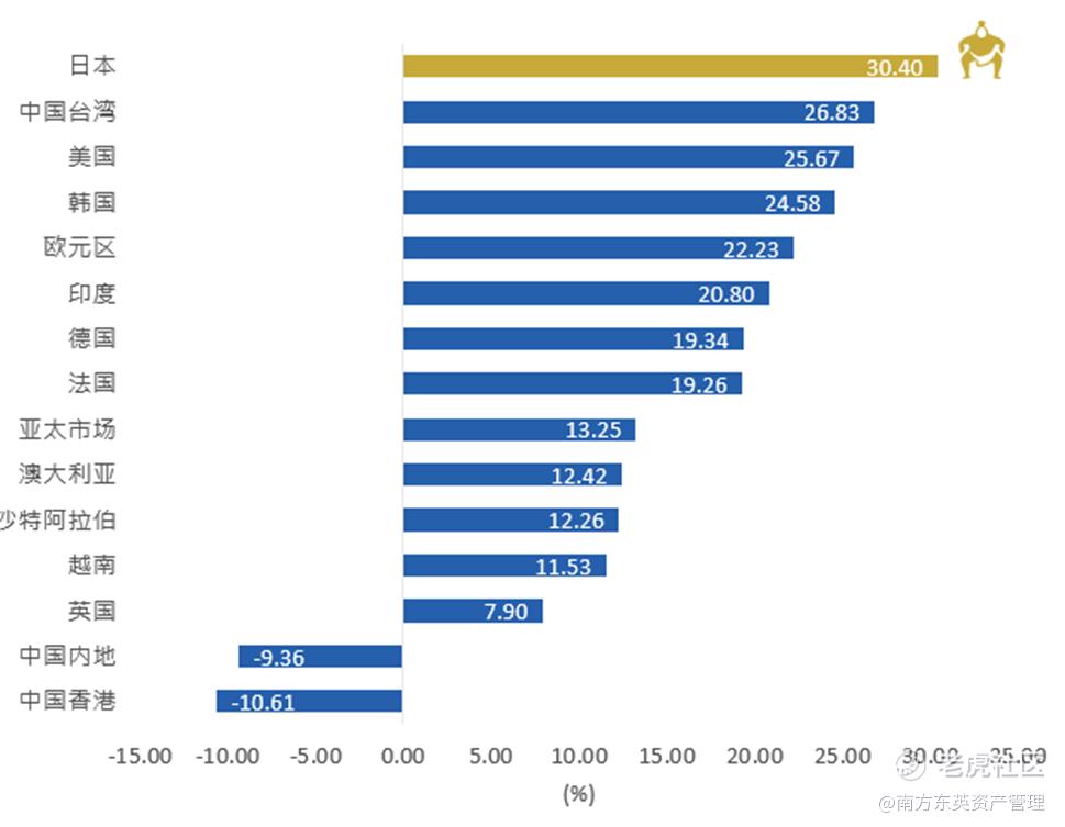 资料来源:彭博,2022/12/30-2023/12/29。除台湾加权指数(彭博代码:TWSE Index)外,均为净总回报指数。各市场代表指数分别为中国香港-恒生指数、中国内地-沪深300指数、英国-英国富时100指数、越南-富时越南30指数、沙特阿拉伯-富时沙特阿拉伯指数、澳大利亚-澳大利亚S&P/ASX200指数、亚太市场-富时亚太低碳精选指数、法国-CAC40指数、德国-DAX指数,印度-Nifty50指数、欧元区-Euro STOXX 50指数、韩国-KOSPI、美国-标普500指数、中国台湾-台湾加权指数、日本-日经225指数。仅作说明用途,不应被解释为对上述司法管辖区的任何证券、基金或金融产品进行购买或出售的建议。